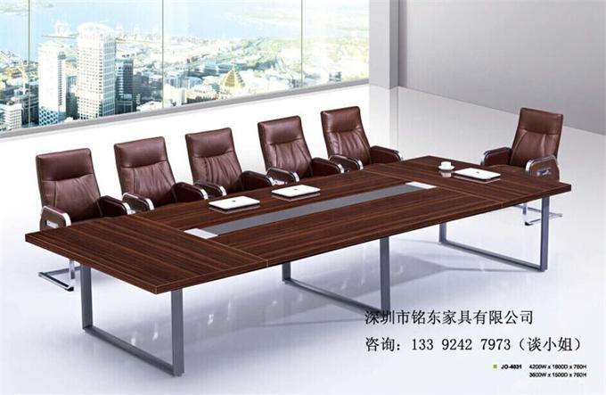 辦公會(huì)議桌的材質(zhì):飾面均采用優(yōu)質(zhì)環(huán)保板為基材,2mm特定封邊,防火,耐磨,防污,硬度高.表面啞光效果持久,強(qiáng)度高,剛性好,不變形,比重合理,所有板材均為經(jīng)防蟲防腐化學(xué)處理.
