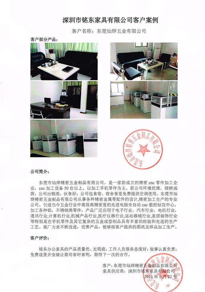 銘東辦公家具的產品質量優、無瑕疵;工作人員服務態度好;做事認真負責;免費送貨并安裝讓我司省時省利。期待下一次的合作。