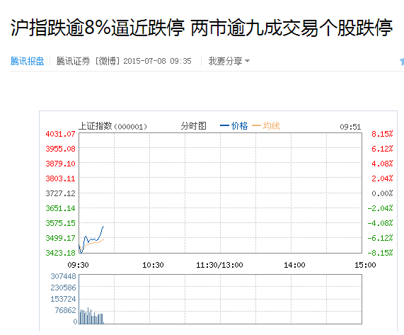 一、A股連續(xù)3周暴跌,致使很多公司都被股票套住,據(jù)騰訊網(wǎng)7.8網(wǎng)報(bào)道:周三兩市巨幅低開(kāi),滬指跌6.97%擊穿3700、3600、3500三道整數(shù)關(guān)口,早盤(pán)兩市繼續(xù)重挫,截至發(fā)稿,滬指跌逾8%報(bào)3426點(diǎn),深成指跌4.61%。
